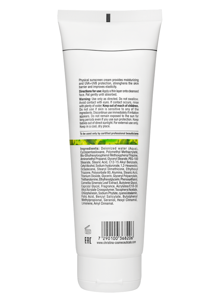 Deionized water (Aqua); Cyclopentasiloxane; Stearic Acid; С12-15 Alkyl Benzoate; Cetyl Alcohol; Ethylhexyl Triazone; PEG-100 Stearate; Glyceryl Stearate; Stearyl Dimethicone; Polysorbate 80; Bis-Ethylhexyloxyphenol Methoxyphenyl Triazine; CI 77891; Polymethyl Methacrylate; Triethanolamine; Glycerin; Phenoxyethanol; Caprylyl Glycol; Octadecene; Acrylates/C10-30 Alkyl Acrylate Crosspolymer; Perfume; Chlorphenesin; Tocopheryl Acetate; Butylene Glycol; Ethylhexylglycerin; Sodium Laureth Sulfate; Sodium Phytate; Sodium hyaluronate; Aminomethyl Propanol; Glyceryl Polyacrylate; Camellia Sinensis Leaf Extract; 1,2-Hexanediol; Folic Acid; Сyanocobalamin; Hexyl Cinnamal; Benzyl Salicylate; Limonene; Amyl Cinnamal; Hydroxycitronellal; Geraniol; Eugenol.